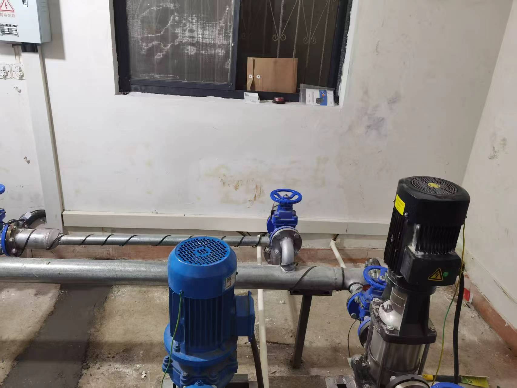 河南商丘某车站,原供水系统不能满足车站用水需要,需要增加一套供水装置。经过实地考察,与业主沟通后,新增室外50立方不锈钢装配式保温水箱做为主供水源,泵房内新增1台增压泵,与原供水泵互为备用,控制系统升级为变频恒压。